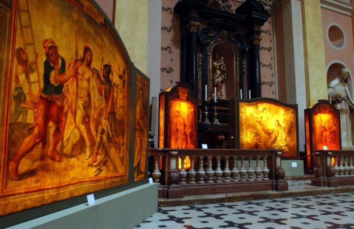 Pasqua senza processioni a causa della pioggia e delle temperature basse. Salvi gli eventi collaterali. Molto atteso oggi pomeriggio Venerdì Santo il Concerto della Civica Filarmonica di Mendrisio che ha luogo al Mercato Coperto alle 16.30. Il programma alternativo preparato a partire dal 2021 dalla Fondazione Processioni Storiche con l’arciprete di Mendrisio, don Claudio Premoli, prevede l’organizzazione di una cerimonia in Chiesa Parrocchiale il Venerdì Santo dalle ore 20.30, con la presentazione in processione degli antichi fanali “trasparenti” realizzati dal Bagutti, accompagnati dalle composizioni classiche del Venerdì Santo suonate dalla Civica. Da alcuni anni a questa parte, all’interno della Chiesa Parrocchiale sono esposte alcune grandi opere (porte) realizzate dal Bagutti.