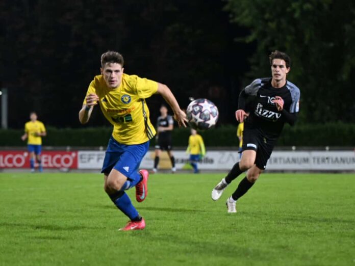 Nella fotografia (© Flavio Monticelli) Roberto Angelini in azione e decisivo nel primo sorriso del Novazzano.